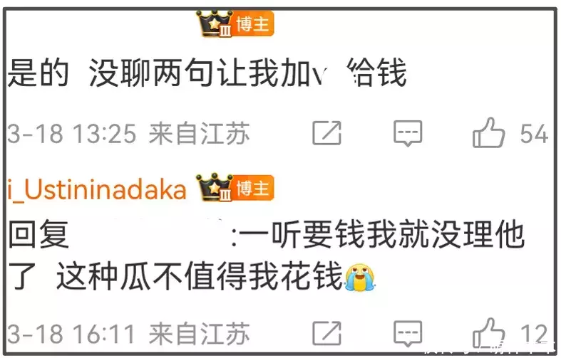 不少网友对于女方20多年后突然自曝是胡歌初恋的行为很不理解,还有博主曝光早在2月份的时候,就有人联系他想要爆料,结果聊了一会儿还想收钱,被博主拒绝。